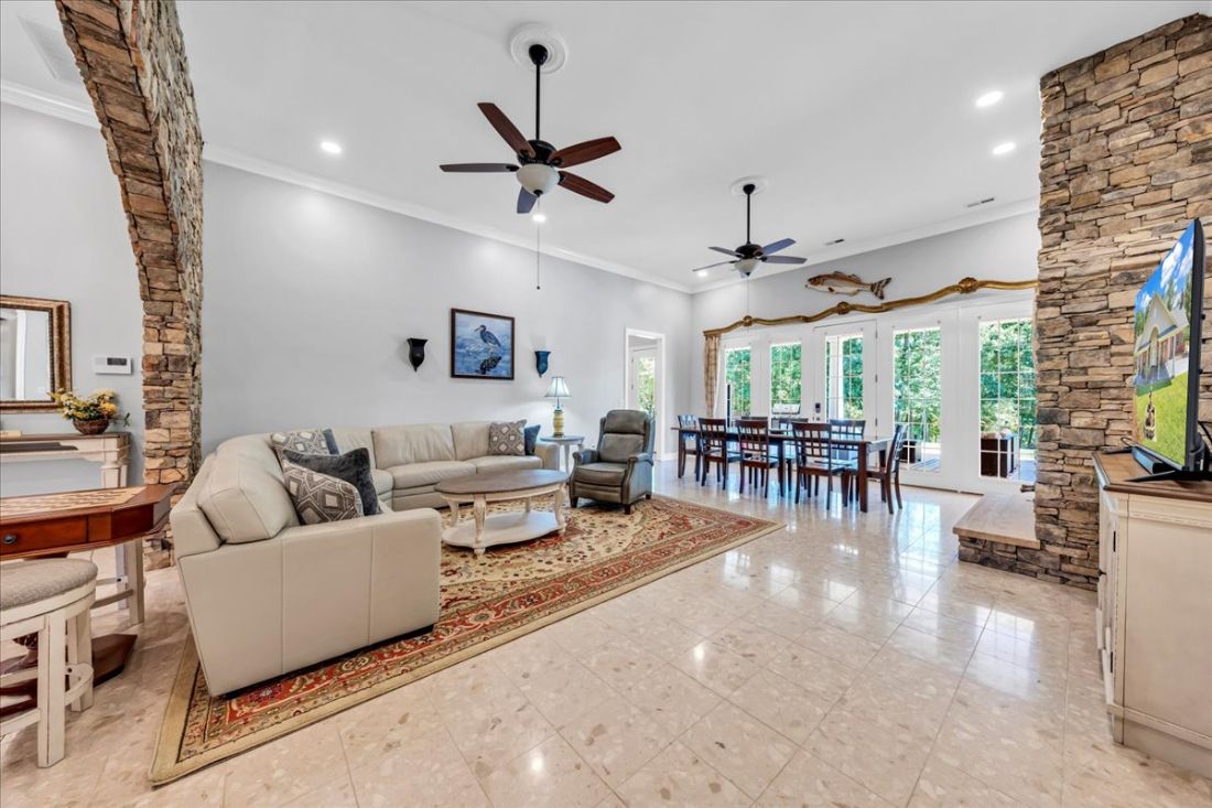 Embrace the ultimate lake lifestyle surrounded by nature’s splendor, whether it’s bringing your boats, horses, family, or guests to this magnificent retreat at SML! The sprawling main home embodies luxurious one-level living with custom-built features that exude a charming European flair, harmoniously complimenting the serene lake ambiance. The spacious, covered, and columned rear patio beckons you to unwind while enjoying panoramic vistas of the sparkling lake—perfect for entertaining or simply soaking in the beauty of your surroundings.