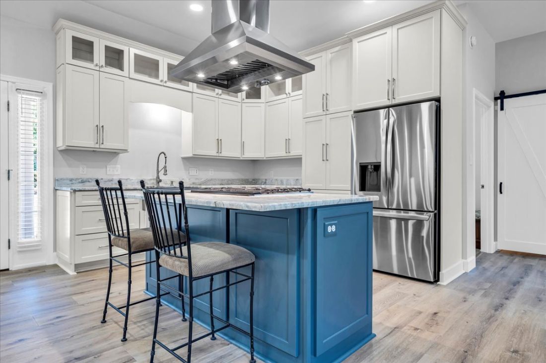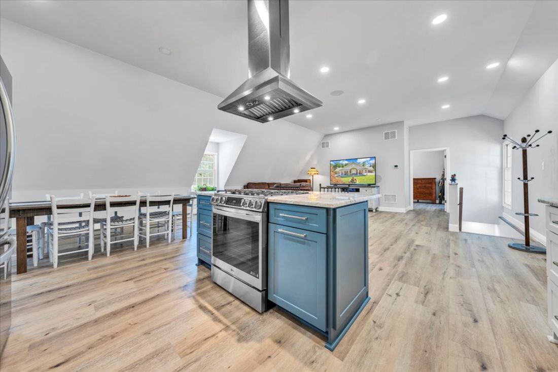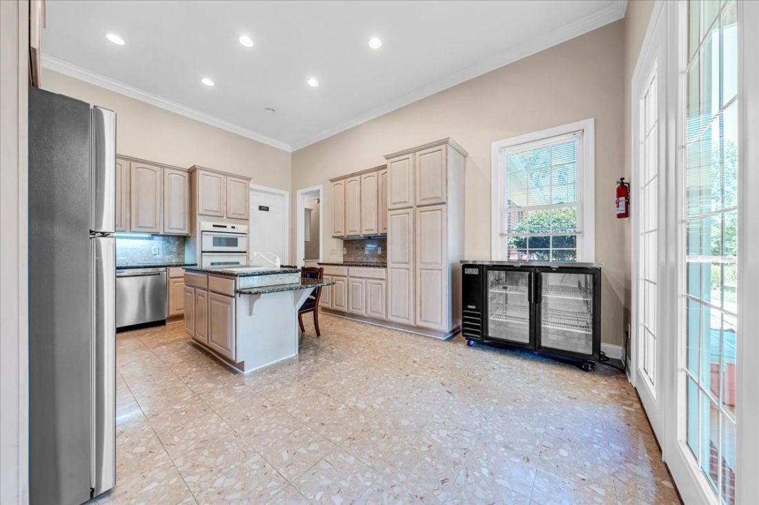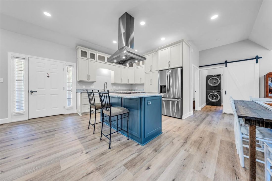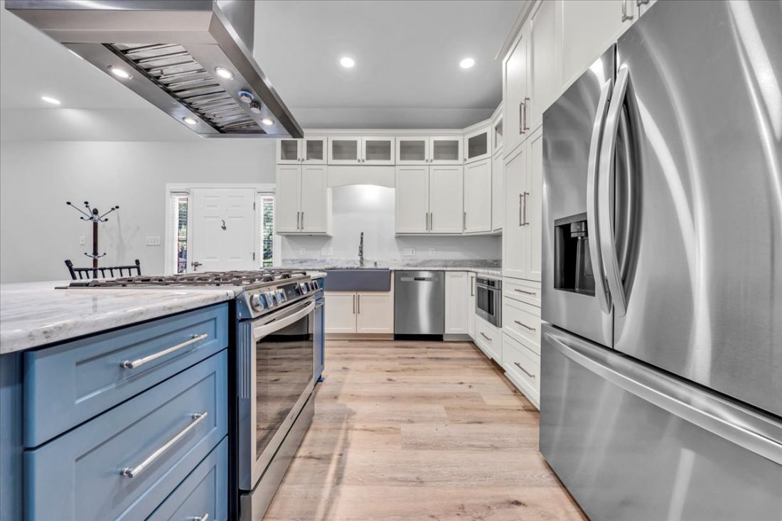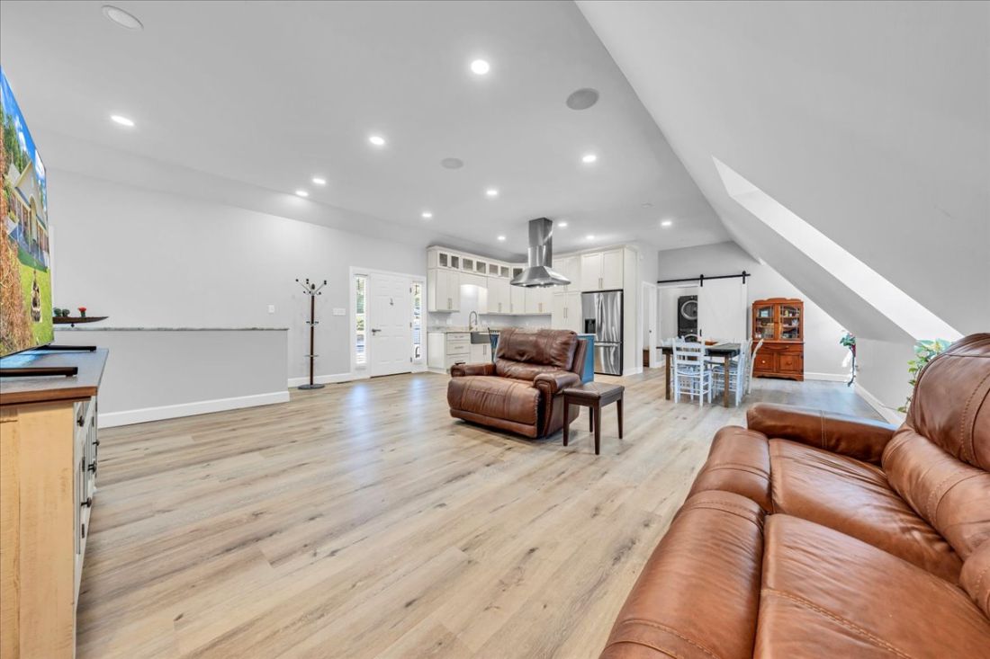 The recently remodeled guest house captures attention with its stylish upper-level open great room, boasting a brand-new chef’s kitchen that invites culinary creativity. The lower level offers an expansive 5-car garage, providing versatility for your storage needs or potential alternative uses.
