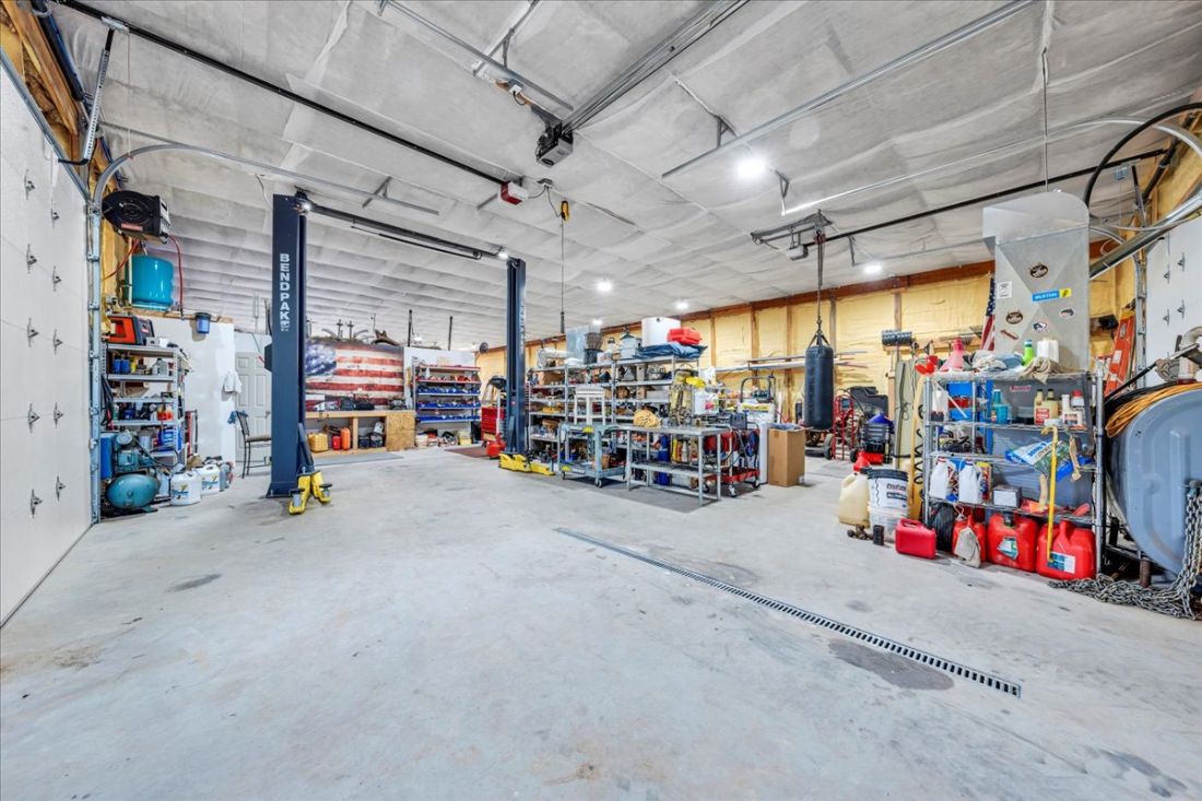 Just across private the road, explore the impressive equestrian barn, a newer structure encompassing 3,872 square feet and expertly roughed in for five horse stalls, a wash bay, and a dedicated tack room. This barn is thoughtfully designed with heating and cooling, full insulation, and features a vehicle lift for convenience. The property is further enhanced by existing water lines in the pasture, accommodating two auto-waterers, making it ideal for equestrian enthusiasts.